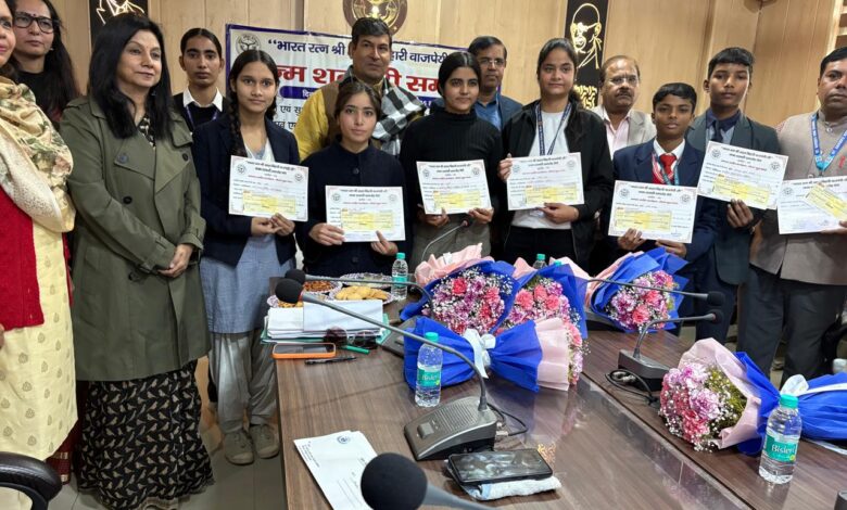 समारोह के दौरान 22 दिसंबर 2025 को आयोजित जनपद स्तरीय प्रतियोगिताओं के विजेता छात्र-छात्राओं को मंच पर सम्मानित किया गया। उन्हें प्रमाण-पत्रों का वितरण एवं धनराशि प्रदान कर उनके उत्कृष्ट प्रदर्शन के लिए प्रोत्साहित किया गया। इस अवसर पर विजयी प्रतिभागियों ने अपनी सुंदर एवं सशक्त कलात्मक प्रस्तुतियाँ भी दीं, जिनमें उनकी रचनात्मकता, आत्मविश्वास एवं प्रतिभा का प्रभावशाली प्रदर्शन देखने को मिला। इन प्रस्तुतियों ने सभागार में उपस्थित सभी दर्शकों को मंत्रमुग्ध कर दिया तथा कार्यक्रम की गरिमा को और अधिक बढ़ाया।
