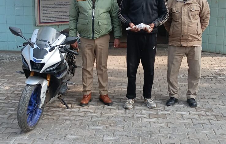 थाना जारचा पुलिस द्वारा एक वाहन चोर गिरफ्तार, कब्जे से चोरी की एक मोटर साइकिल व अवैध शस्त्र बरामद।