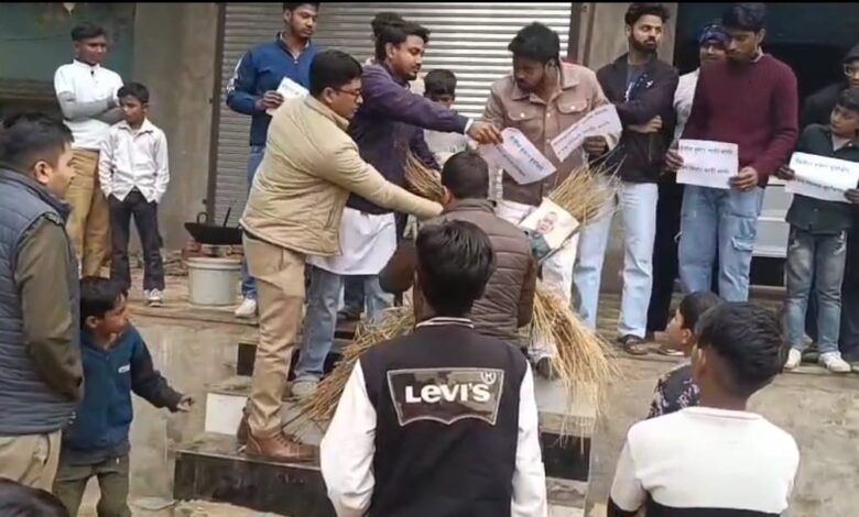 पुतला फूंकने से पहले ही पुलिस ने पुतला छीना, दो लोगों को हिरासत में भी लिया गया,