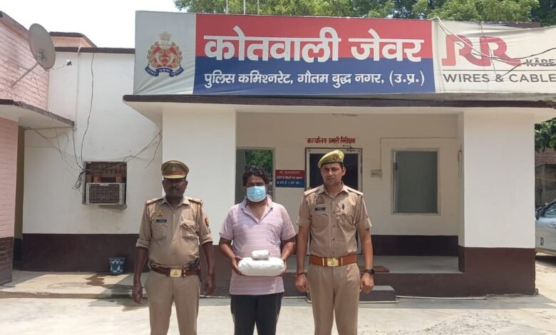 थाना जेवर पुलिस द्वारा, गांजा तस्कर अभियुक्त गिरफ्तार, कब्जे से 01 किलो 400 ग्राम गांजा बरामद।