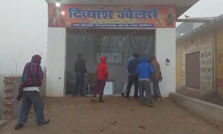 जहांगीराबाद थाना क्षेत्र के आहार रोड पर स्थित दिव्यांश ज्वेलर्स के यहां कल शाम हुई वारदात।
