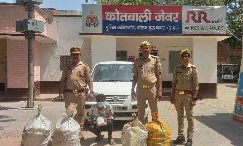 थाना जेवर पुलिस द्वारा शराब तस्कर अभियुक्त गिरफ्तार, कब्जे से सैन्ट्रो कार एवं 500 पव्वे अवैध देशी शराब बरामद।