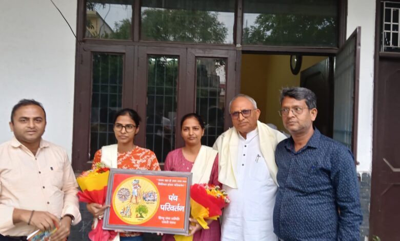 कमिश्नर (कमर्शियल टैक्स) के पद पर चयन होने पर मनवीर जी व दोनों बहनों को शाल पहनाकर एवं पंच परिवर्तन की पुस्तक व प्रतीक चिन्ह देकर सम्मान किया व उज्ज्वल भविष्य के लिए शुभकामनाये दी