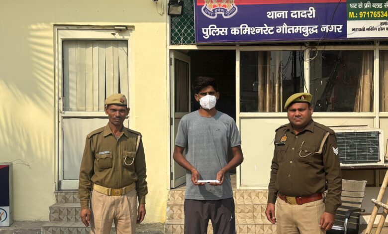 दिनांक 17.11.2025 को थाना दादरी पुलिस द्वारा शातिर अभियुक्तो के विरूद्ध कार्यवाही करते हुए 01 अभियुक्त आकाश कुमार पुत्र सुदामा निवासी ग्राम चिटेहरा थाना दादरी गौतमबुध्दनगर उम्र करीब 22 वर्ष को कब्रिस्तान के पीछे नाले के पास से गिरफ्तार किया गया । अभियुक्त के कब्जे से 01 अदद चाकू नाजायज बरामद किया गया । अभियुक्त के विरूद्ध अभियोग पंजीकृत कर अग्रिम वैधानिक कार्यवाही की जा रही है ।