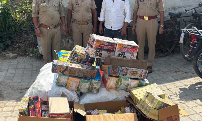 थाना दादरी पुलिस द्वारा अवैध/प्रतिबधित विस्फोटक पदार्थ (पटाखे) के साथ एक अभियुक्त गिरफ्तार, कब्जे से भारी मात्रा में प्रतिबधिंत पटाखे बरामद।