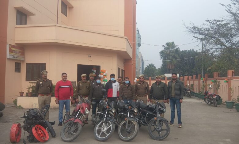थाना सैक्टर-126 पुलिस द्वारा 02 पहिया वाहन चोर गैंग के 03 अभियुक्त गिरफ्तार, कब्जे/निशादेही से चोरी की 05 मोटरसाइकिलें, मोटरसाईकिल के पार्टस (इंजन, चैचिस, एलाय आदि), चोरी करने की घटना में प्रयुक्त 02 मास्टर चाबी, 01 हथौडा, 01 नुकिला पेचकस बरामद।