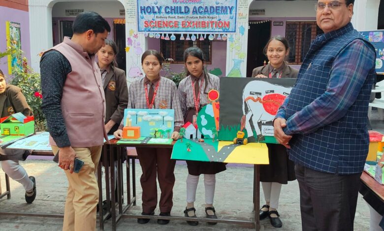 दादरी , रेलवे रोड स्थित होली चाइल्ड एकेडमी में आज कक्षा 6 से 8 तक के विद्यार्थियों ने विज्ञान प्रदर्शनी का आयोजन किया