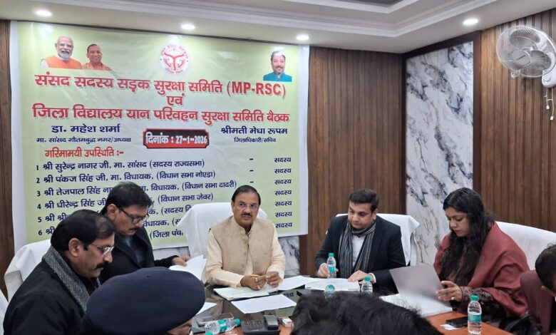 माननीय सांसद, लोक सभा, गौतम बुद्ध नगर डॉ. महेश शर्मा की अध्यक्षता में कैम्प कार्यालय, सेक्टर-27, नोएडा के सभागार में संसद सदस्य सड़क सुरक्षा समिति (MP-RSC) एवं जिला विद्यालय यान परिवहन सुरक्षा समिति की एक महत्वपूर्ण संयुक्त समीक्षा बैठक आयोजित की गई।