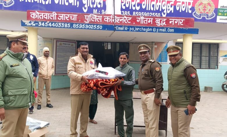 एडीसीपी ग्रेटर नोएडा श्री सुधीर कुमार द्वारा प्रभारी निरीक्षक थाना जारचा के साथ थाना क्षेत्र में ड्यूटी कर रहे ग्राम प्रहरियों, होमगार्ड्स/पीआरडी जवानों, फाल्वर एवं सफाईकर्मियों को शीतलहर से बचाव हेतु कंबल, गर्म जैकेट, टार्च, गर्म कैप, गर्म मोजे, सैनेटाइज़र एवं मास्क वितरित किए गए।