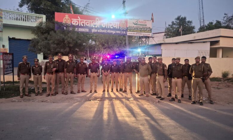होली एवं रमजान के दृष्टिगत क्षेत्र में प्रभारी निरीक्षक जारचा मय पुलिस बल एवं पीएसी बल के साथ कस्बा